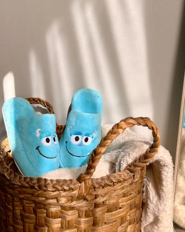 Pantuflas de peluche en color celeste con el diseño bordado de Sullivan, uno de los personajes más queridos. Tienen interior acolchonado, son livianas y muy cómodas para andar por casa. La suela es antideslizante para más seguridad. Ideales para quienes quieren comodidad y un toque divertido.