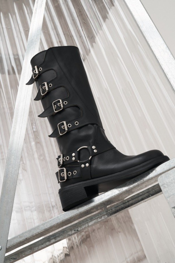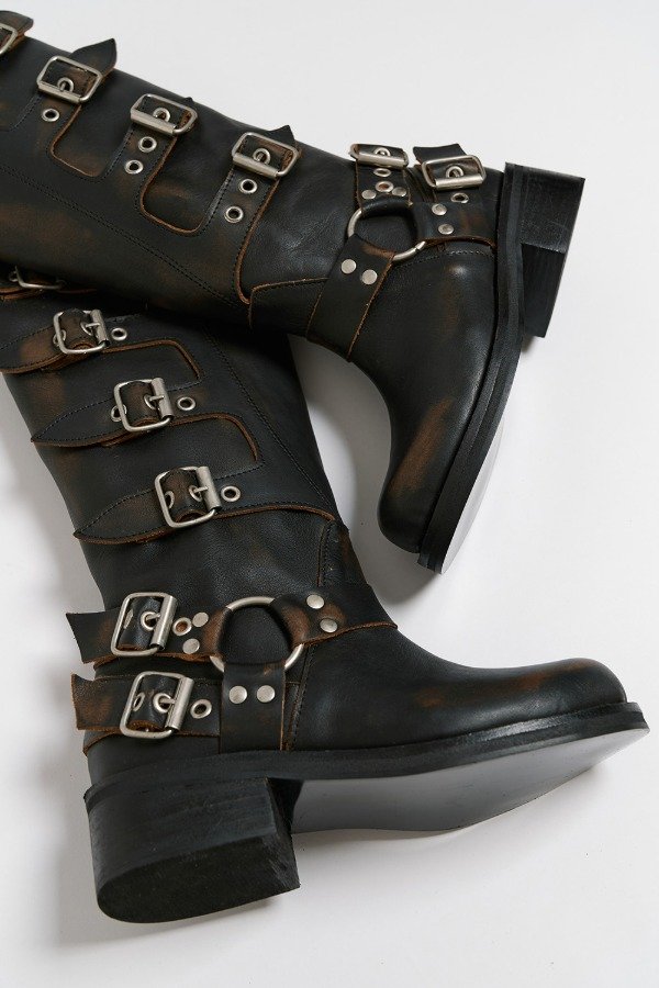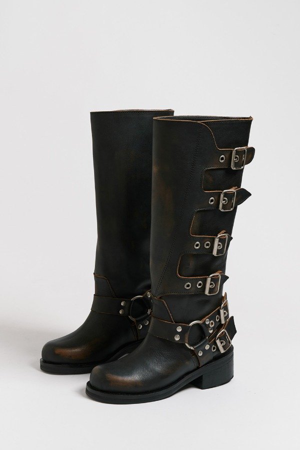 Bota de cuero vacuno , fondo artesanal .