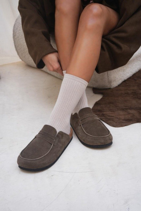 De cuero gamuzón, plantilla Birk forrada en micro fibra.